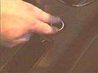2 - Free the clips that hold the ashtray in. There are two small plastic clips that hold the ashtray holder in place (so you can't just pull it out). Use your small flatblade screwdriver to carefully prise these clips towards you (from the top of the clip). Do one at a time and pull the front (nearest the dashboard) edge of the ashtray holder up as the clips come out. |